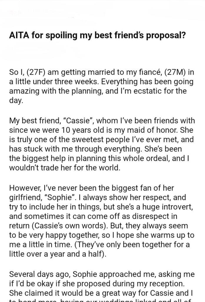 AITA for spoiling my best friend’s proposal?
