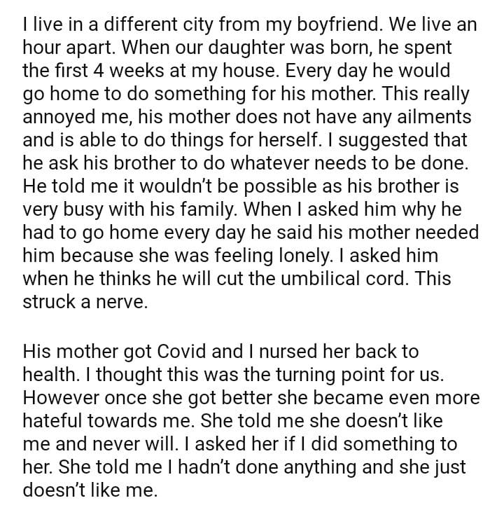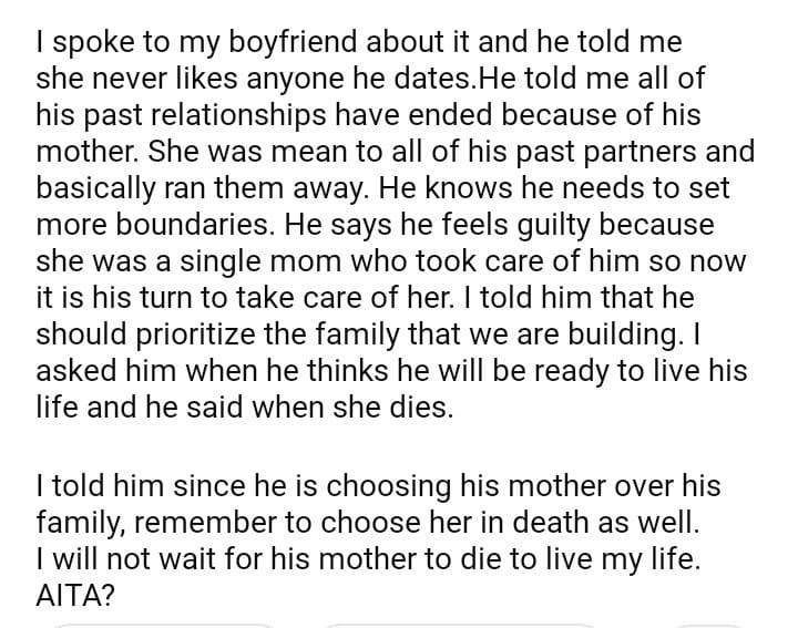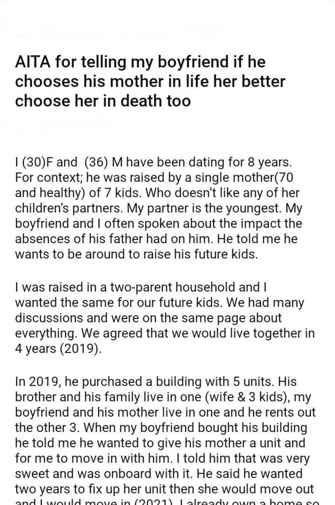 AITA for telling my boyfriend to choose his mother