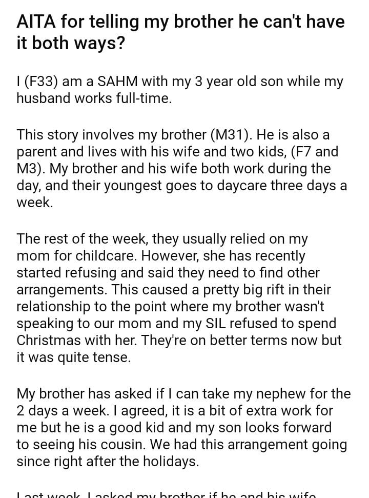 AITA for telling my brother he can’t have it both ways?