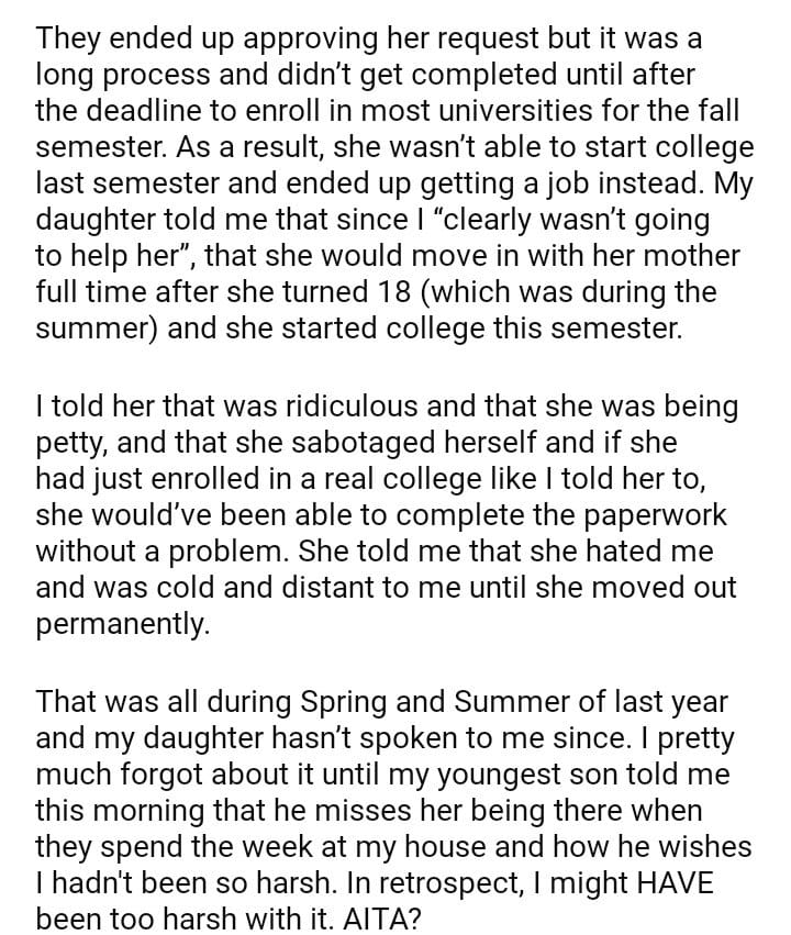 AITA for telling my daughter she did herself?