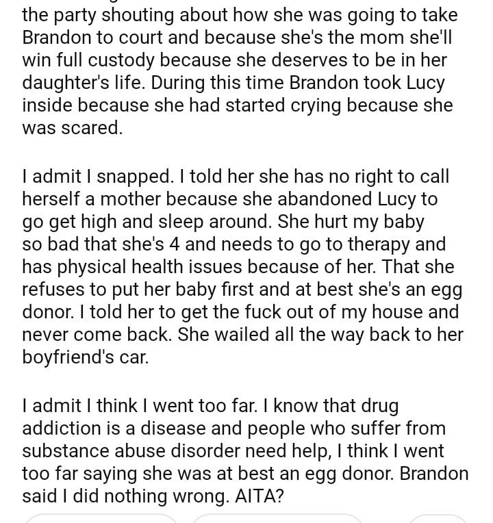 AITA for telling my daughter’s biological mother that she doesn’t deserve to call herself a mom?