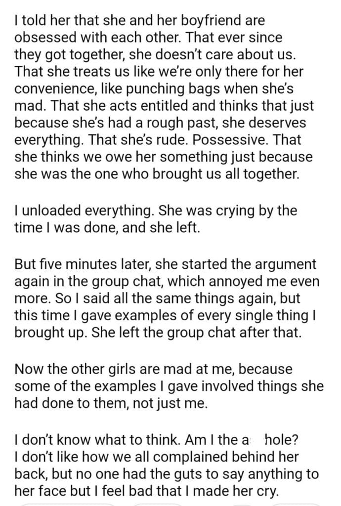 AITA for telling my friend everything