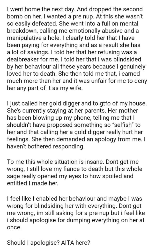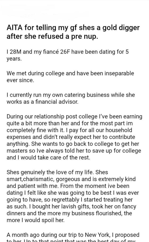 AITA for telling my gf shes a gold digger
