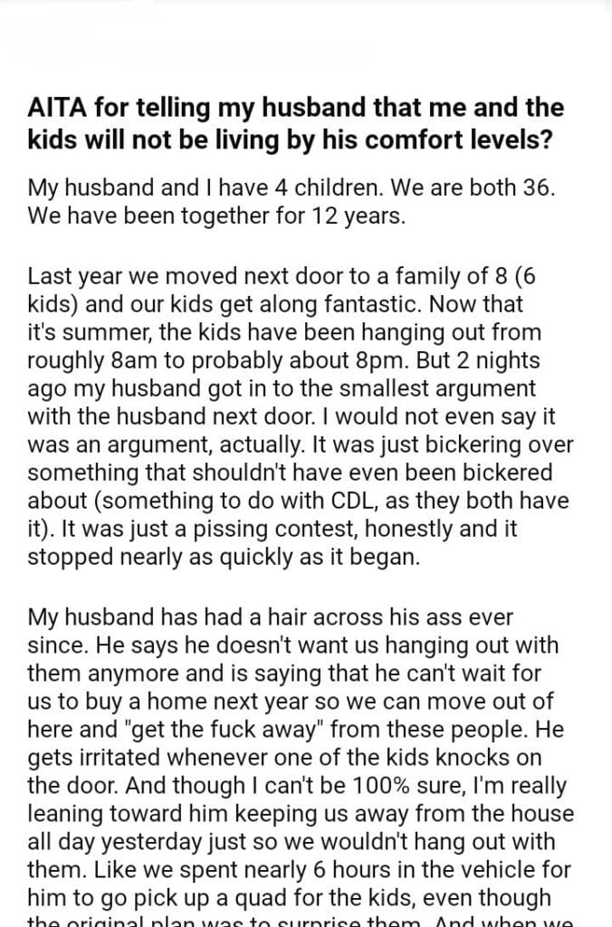 AITA for telling my husband that me and the kids will not be living by his comfort levels?