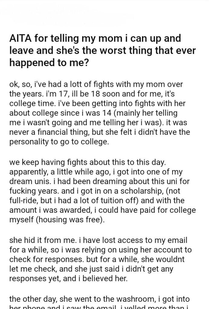 AITA for telling my mom i can up and leave