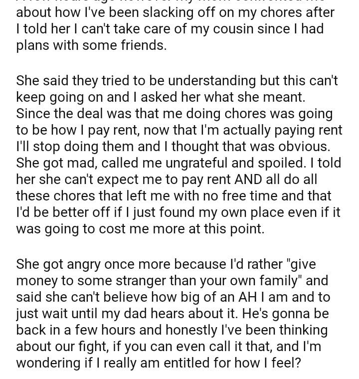 AITA for telling my mom I won’t pay rent AND do chores to live with them?
