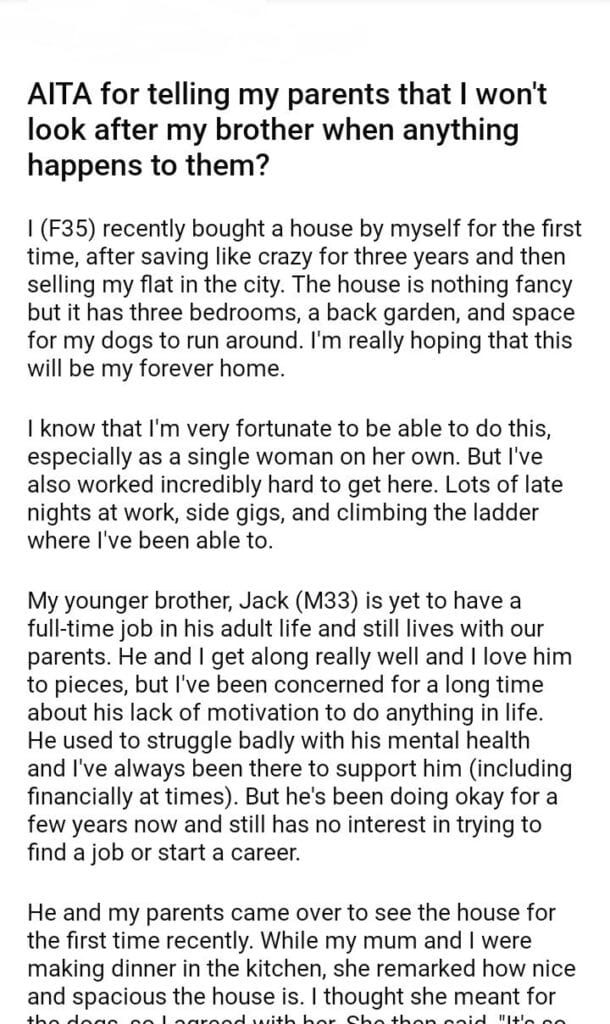 AITA for telling my parents that I won’t look after my brother when anything happens to them?