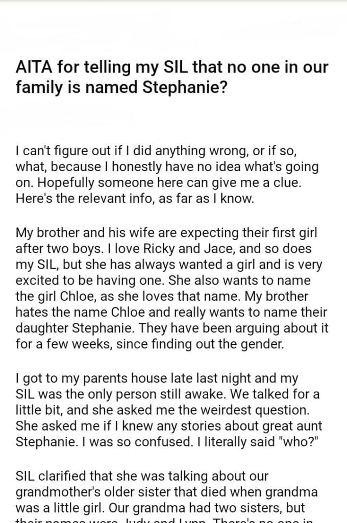 AITA for telling my SIL that no one in our family is named Stephanie?