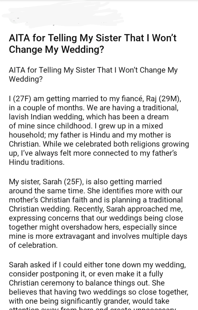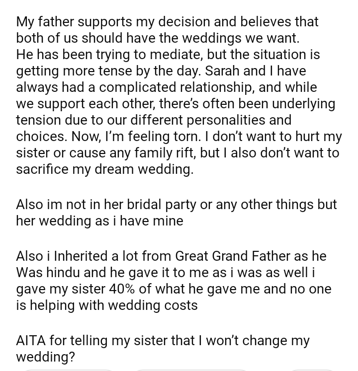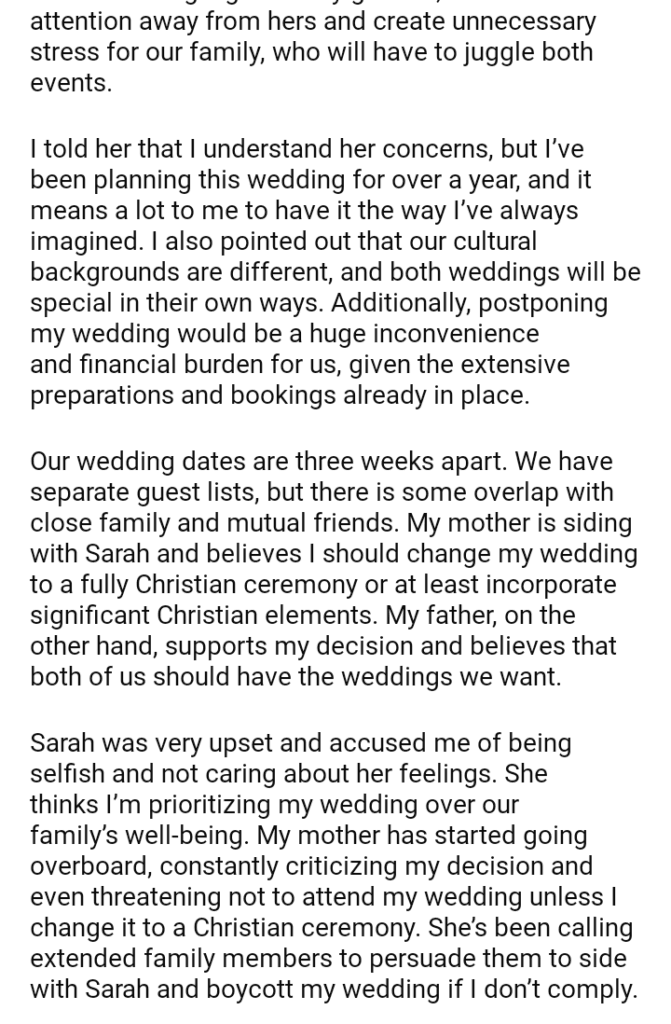 AITA for Telling My Sister That I Won’t Change My Wedding?