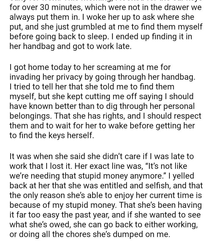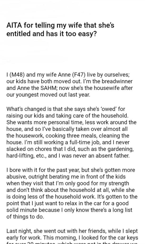 AITA for telling my wife that she’s entitled and has it too easy?