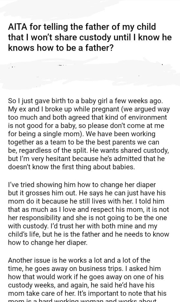 AITA for telling the father of my child that I won’t share custody until I know he knows how to be a father?