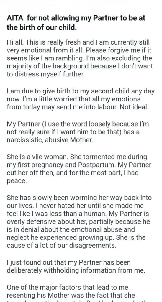 AITA for the birth of our child.