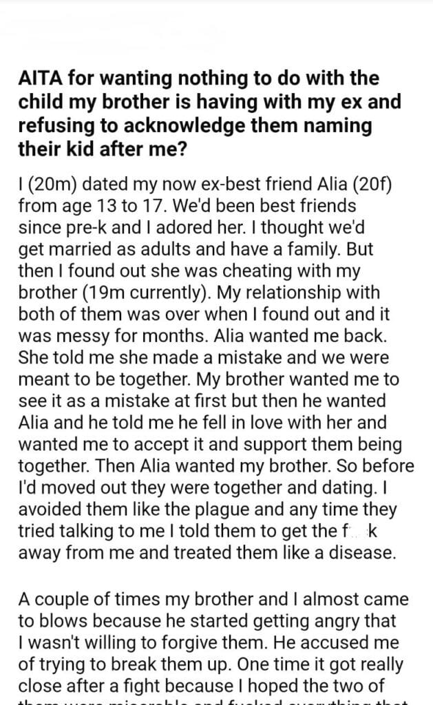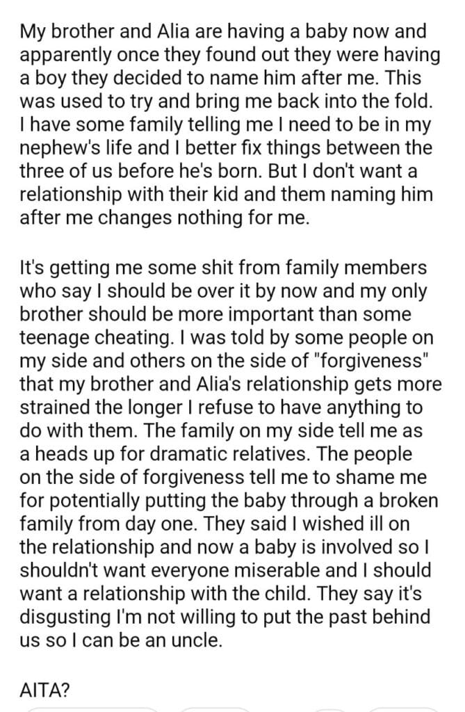 AITA for the child my brother is having