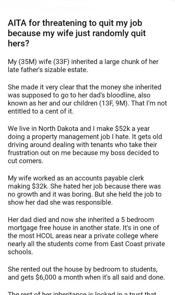 AITA for threatening to quit my job because my wife just randomly quit hers?