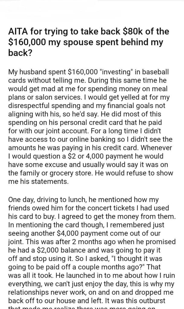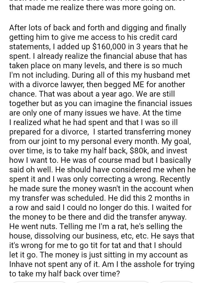 AITA for trying to take back my spouse spent behind my back?