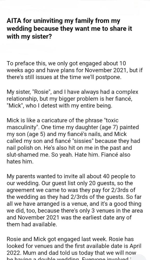 AITA for uninviting my family from my wedding