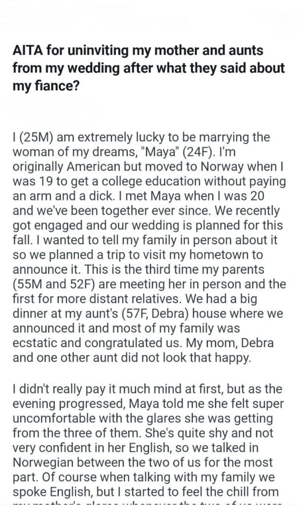 AITA for uninviting my mother and aunts