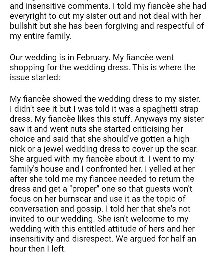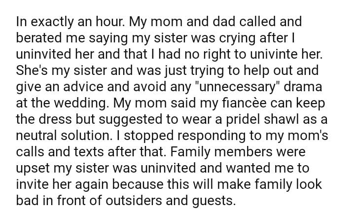AITA: For uninviting my sister to my wedding for what she told my fiancèe?