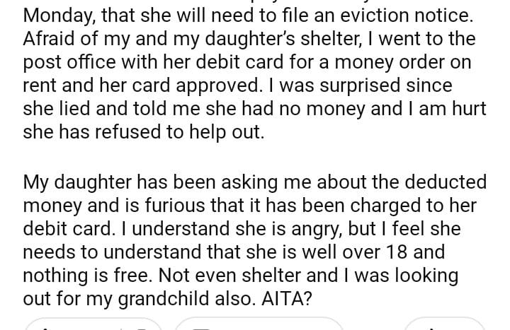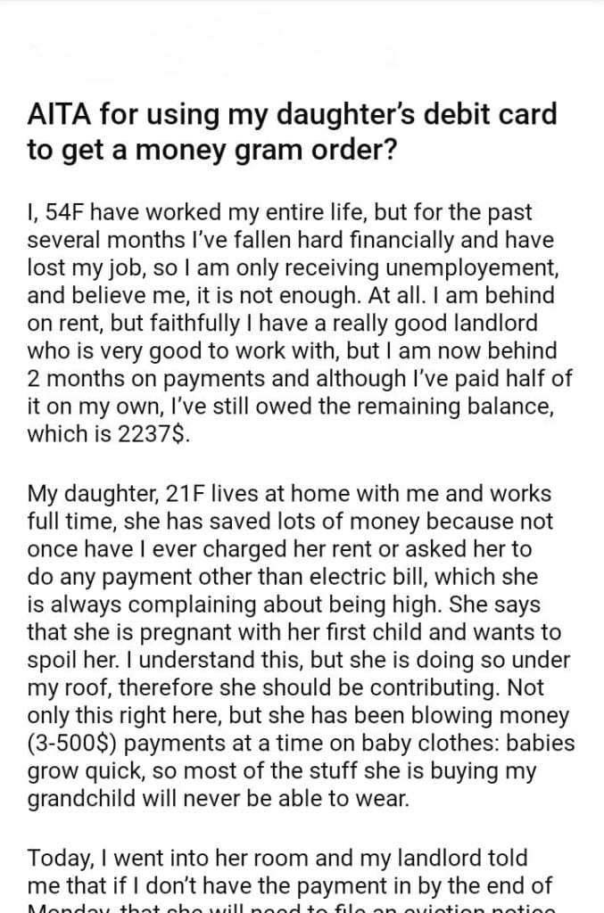 AITA for using my daughter’s debit to get a money