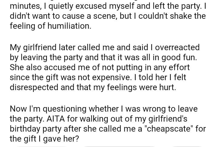 AITA for walking out of my girlfriend’s birthday party