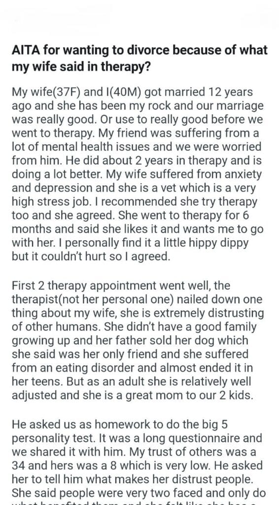 AITA for wanting to divorce because of what my wife said