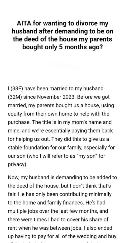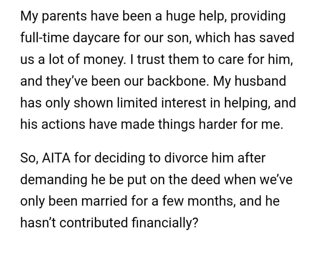 AITA for wanting to divorce my husband after demanding