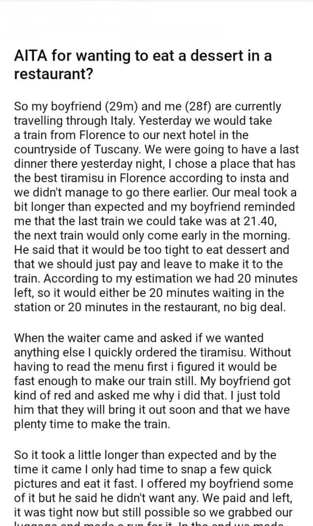 AITA for wanting to eat a dessert in a restaurant?