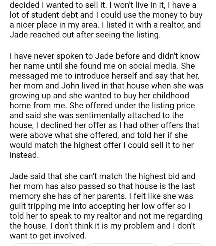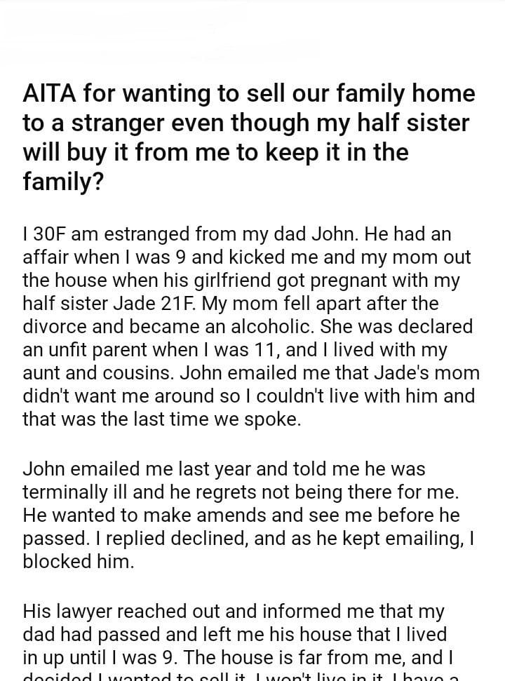 AITA for wanting to sell our family home to a stranger