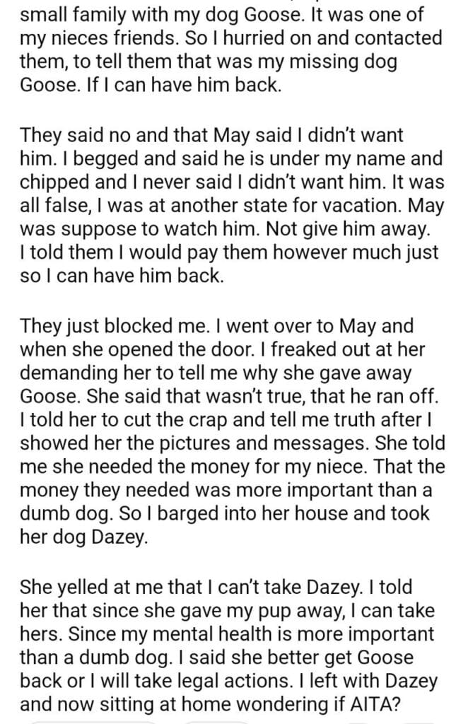 AITA for what I did to my sisters dog