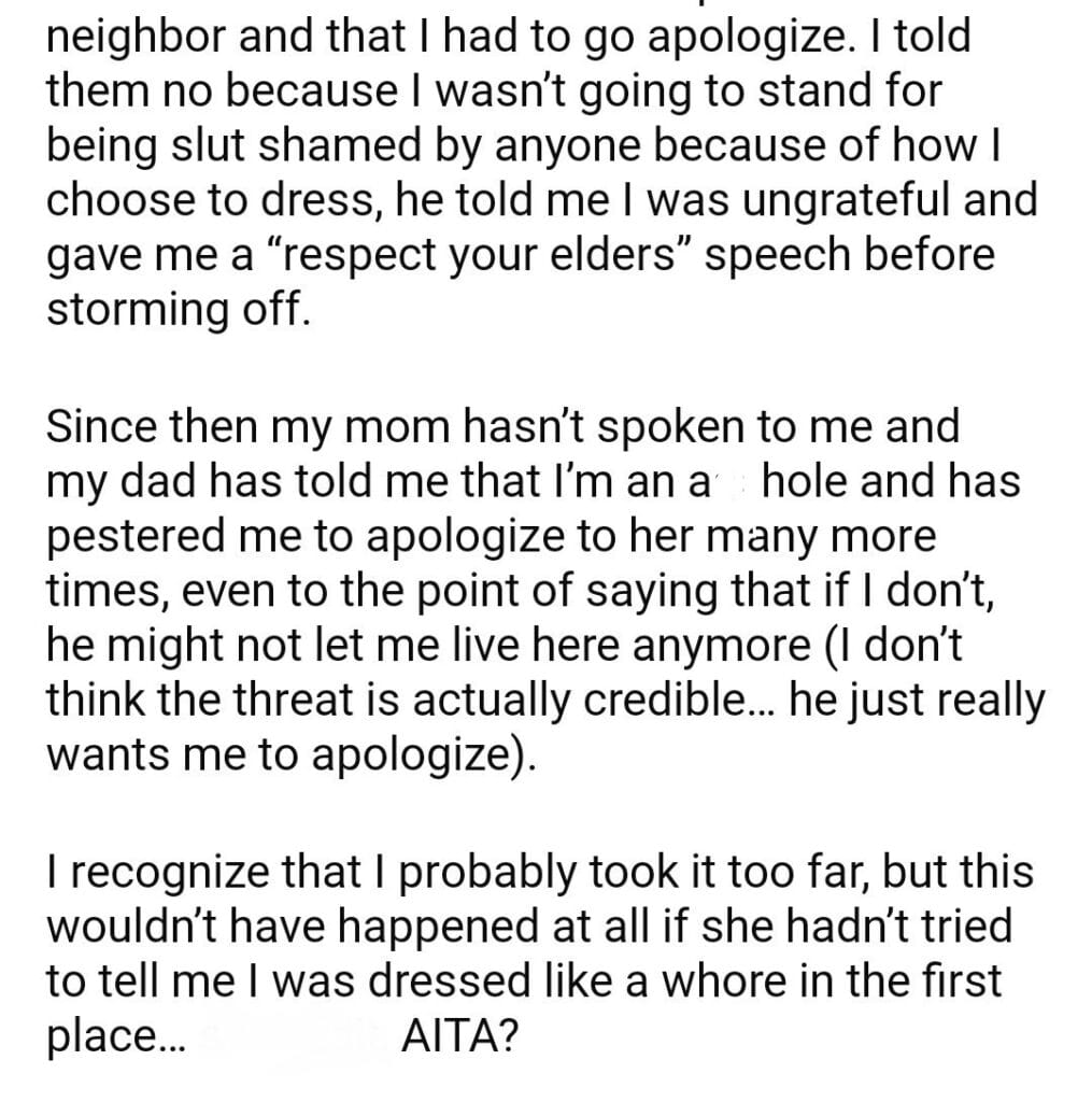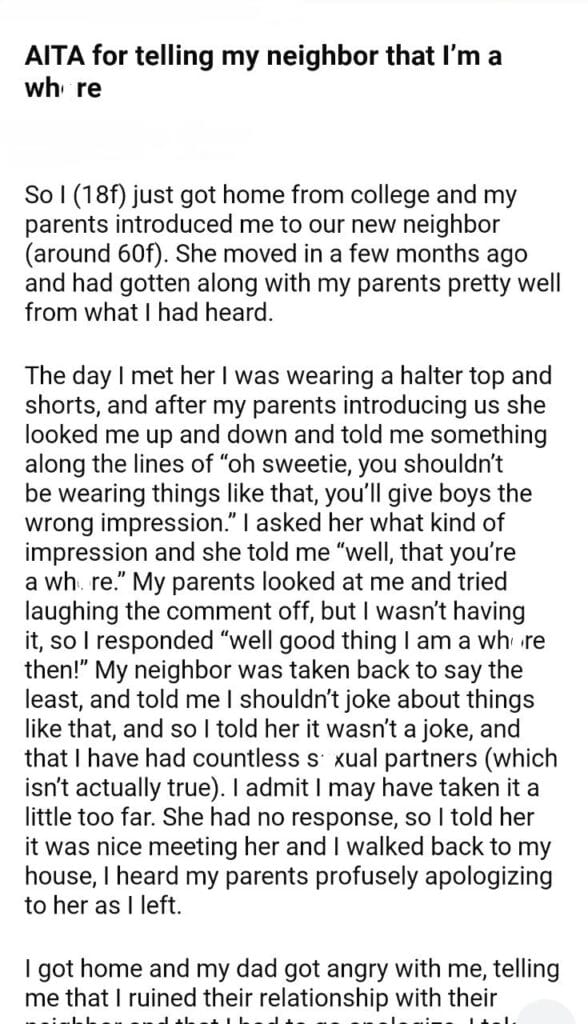 AITA for what I told my neighbor