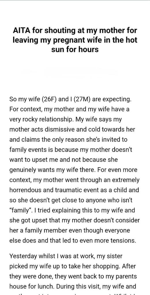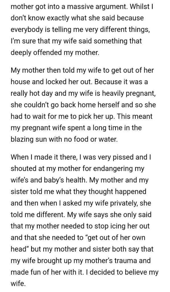 AITA for what my mom did to my pregnant wife