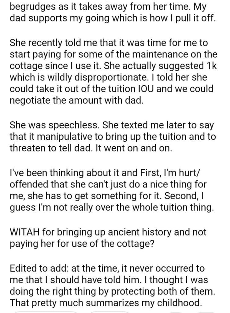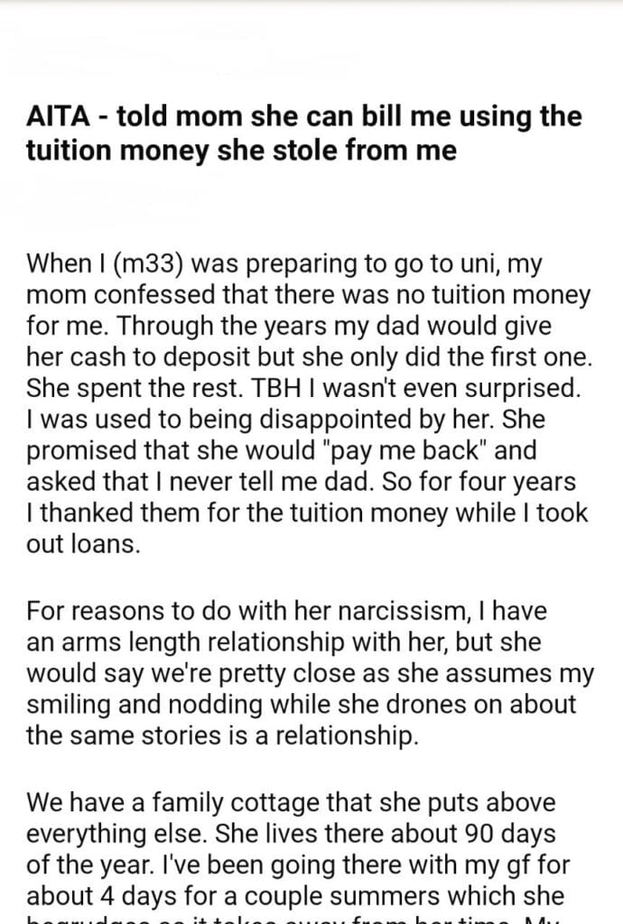 AITA – told mom she can bill me