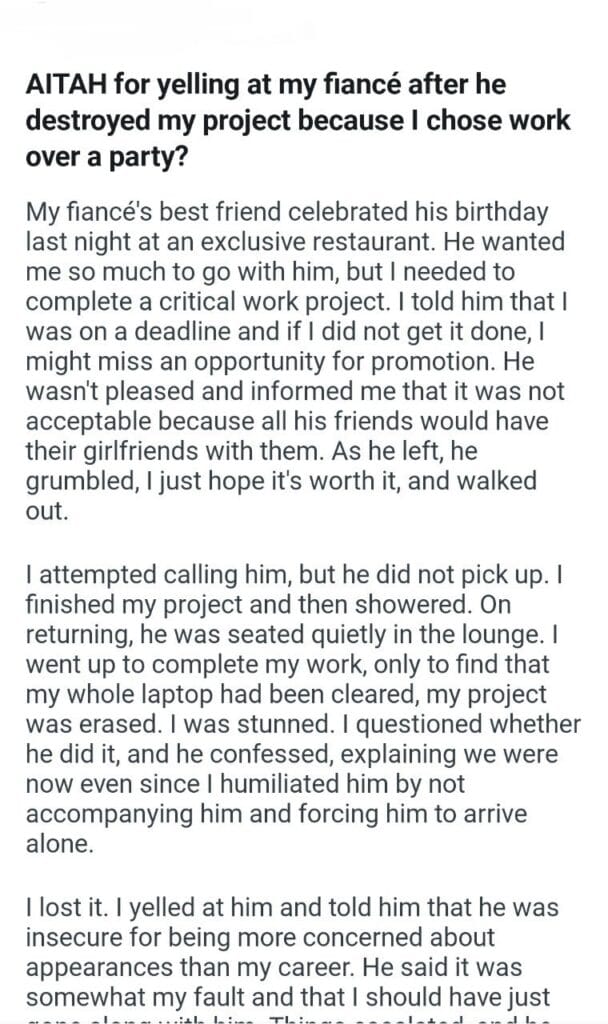 AITAH because I chose work over a party?