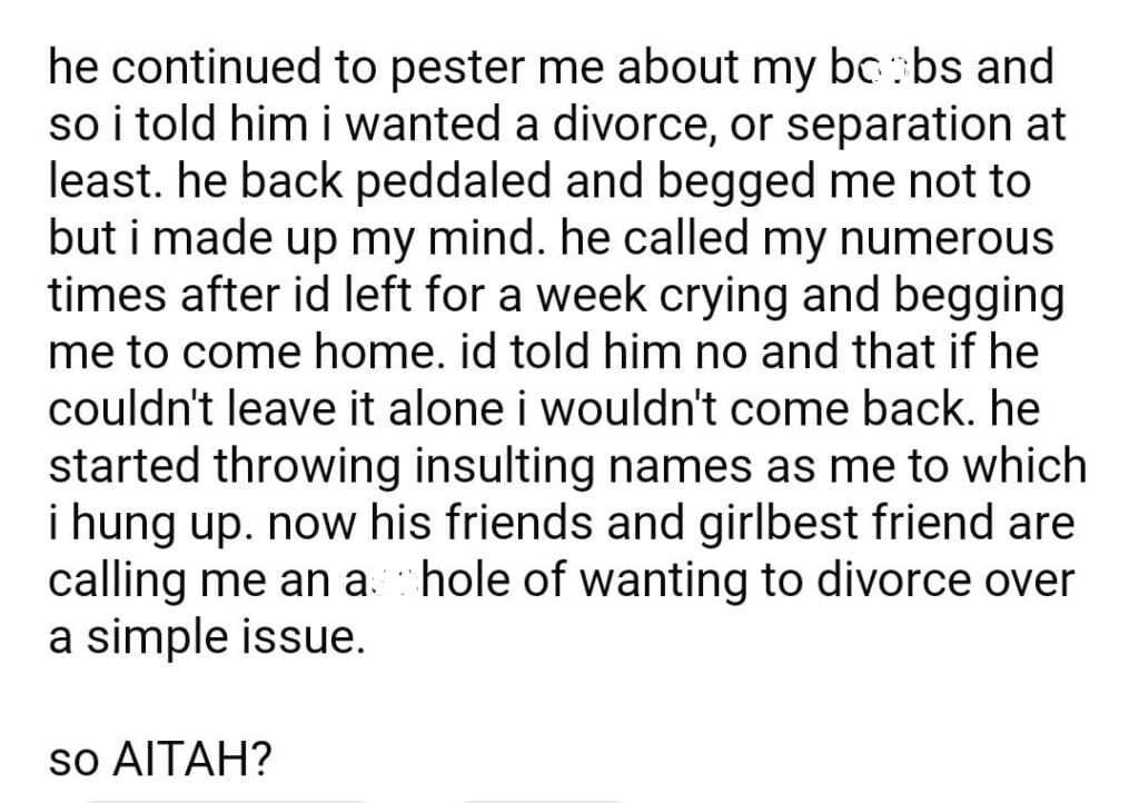 AITAH because my husband insisted