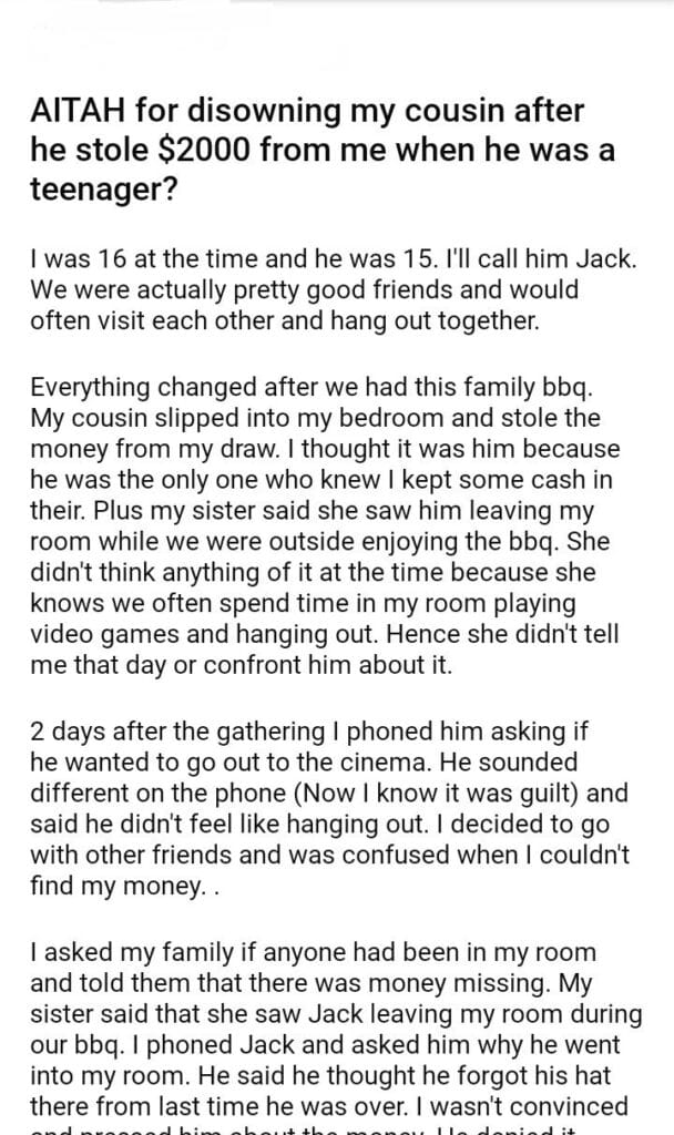 AITAH for disowning my cousin