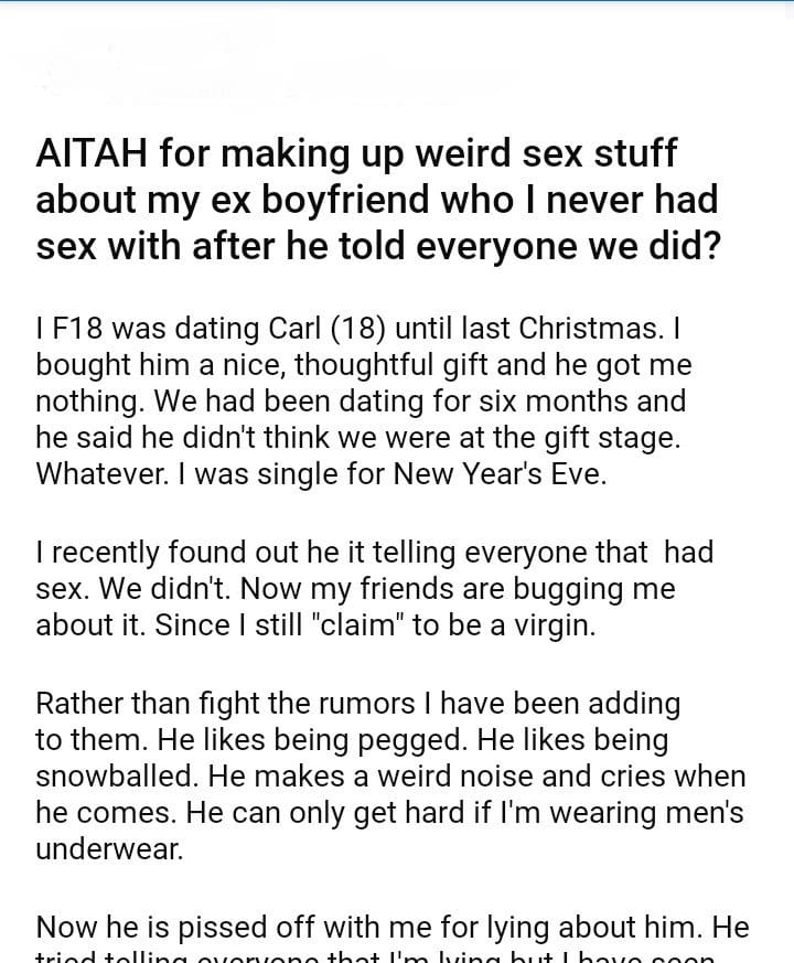 AITAH for making up stuff about my ex boyfriend