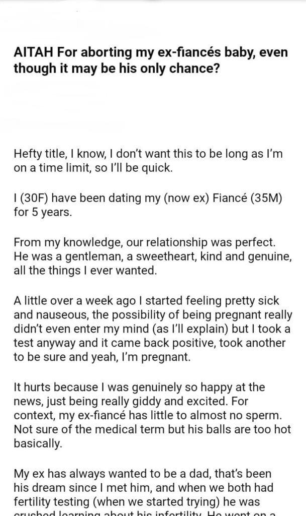 AITAH For my ex-fiancés baby?