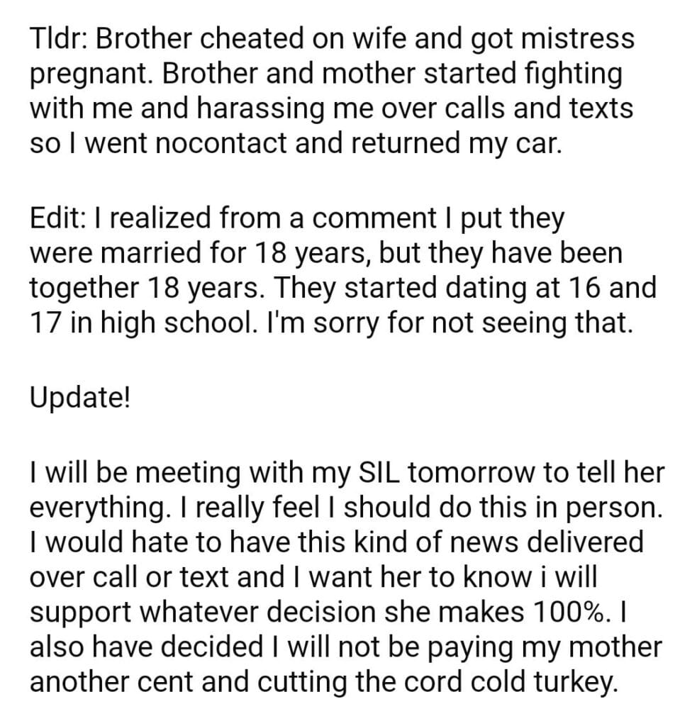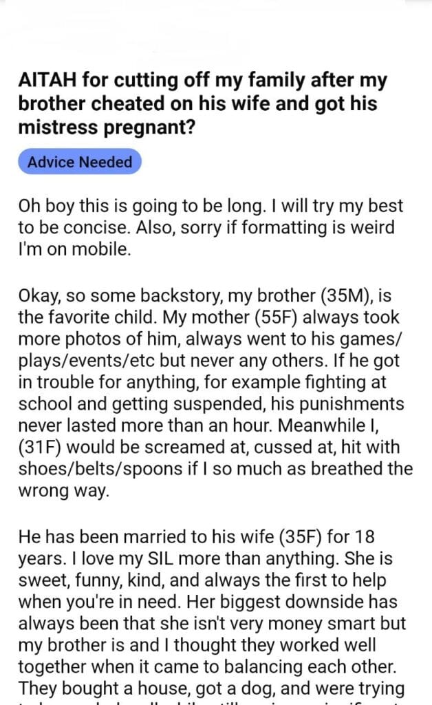 AITAH for my family after what my brother did