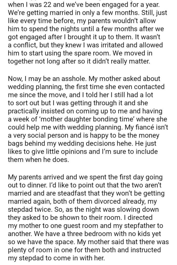 AITAH for not allowing my parents to sleep in the same bed?