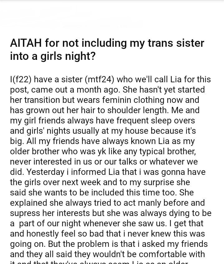 AITAH for not including my sister into a girls night?