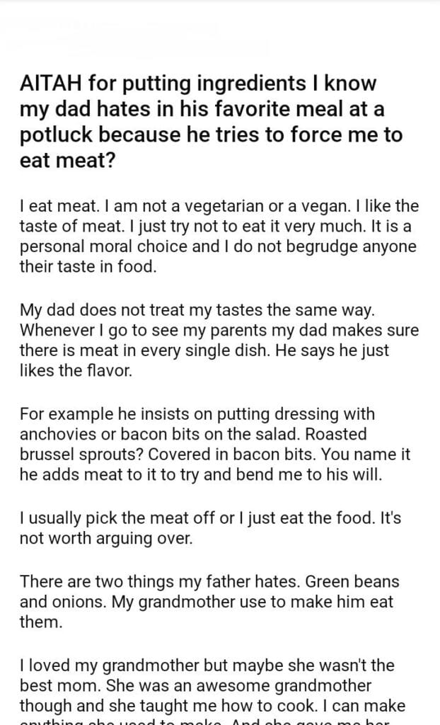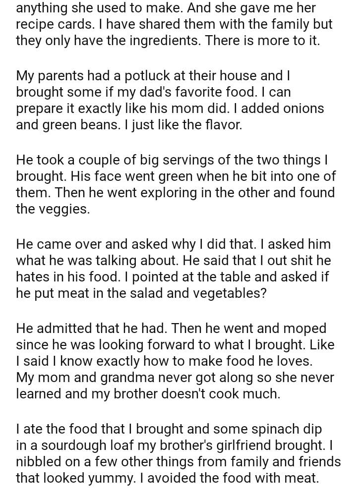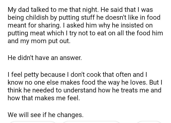 AITAH for putting ingredients in my dad favorite meal at a potluck