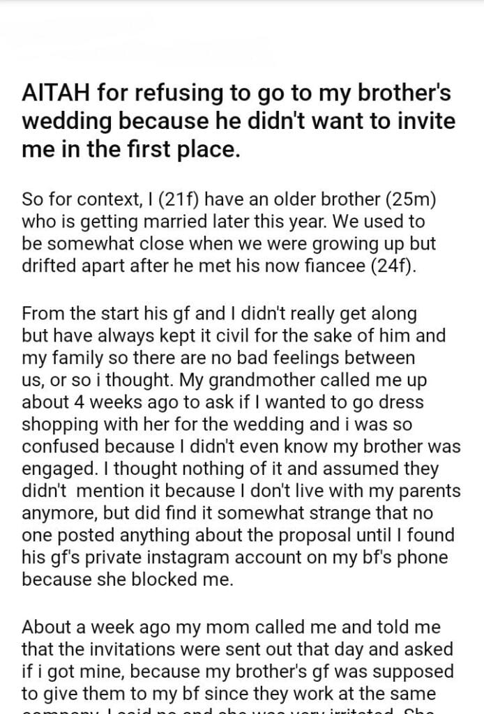 AITAH for refusing to go to my brother’s wedding