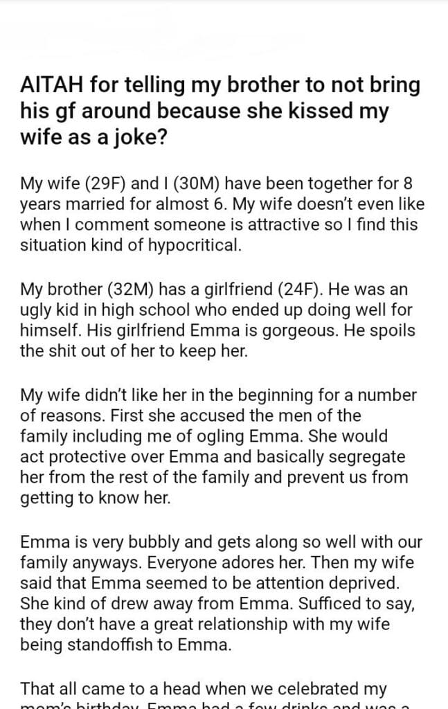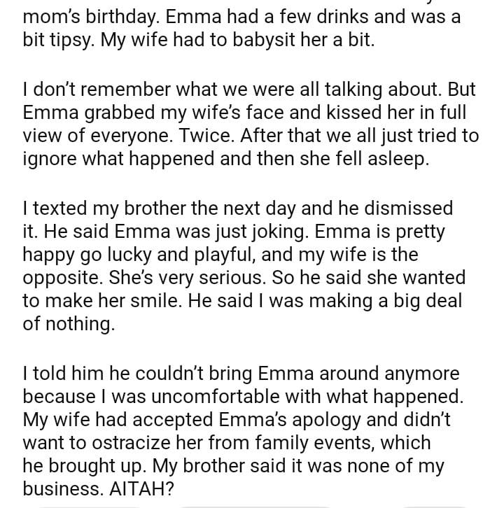 AITAH for telling my brother to not bring his gf around