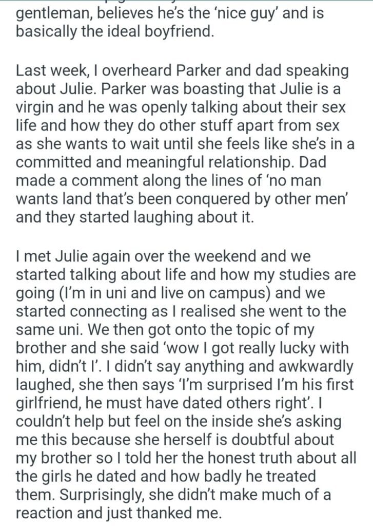 AITAH for telling my brother’s girlfriend