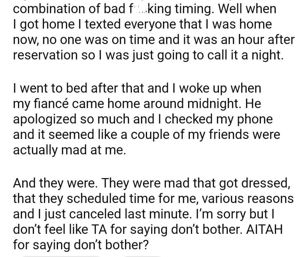 AITAH for telling my fiancé and friends