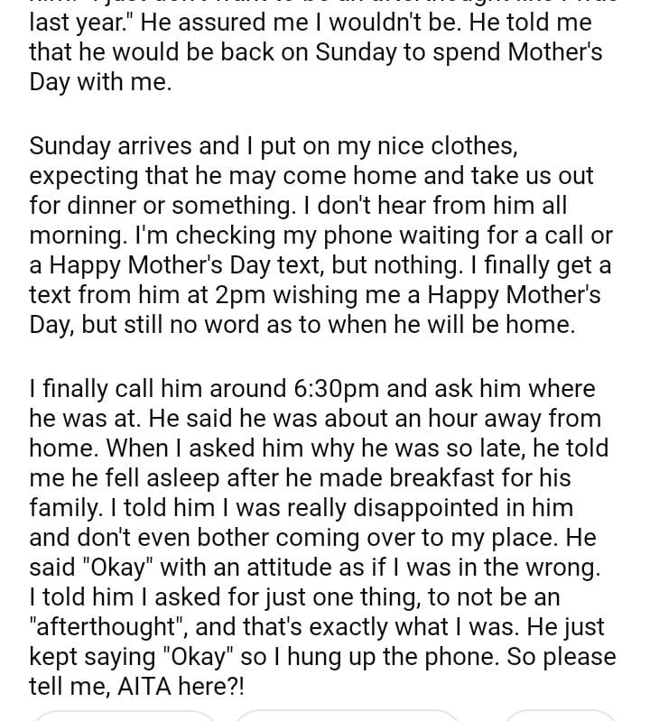 AITAH for telling my fiance don’t bother coming over on Mother’s Day