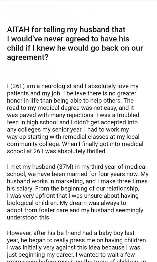 AITAH for telling my husband that I would’ve never agreed to have his child