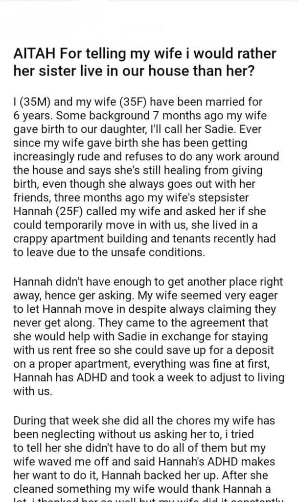 AITAH For telling my wife i would rather her sister live in our house than her?