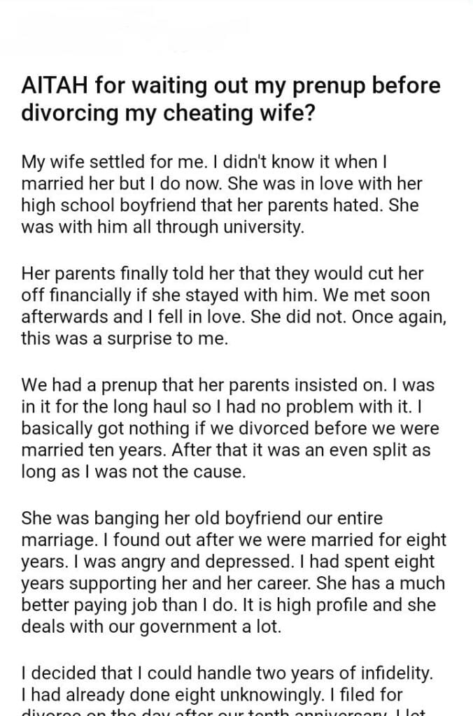 AITAH for waiting out my prenup