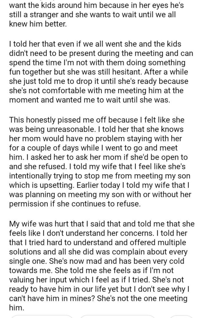 AITAH for wanting to meet my son despite my wife not wanting me to?